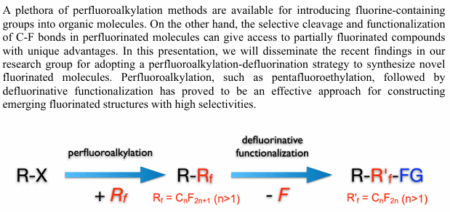 演 題:『Synthesizing Novel Fluorinated Molecules by Adding Fluorine and Removing Fluorine』